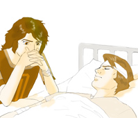 ジョーの枕元で物思いに沈む健です。心情を表すために抑えたトーンに。