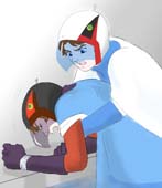 ガッチャマンの時の凛々しい姿はどこへやら、実に情けなーい健と、なんだかんだ言いながら面倒見のいいジョー。
